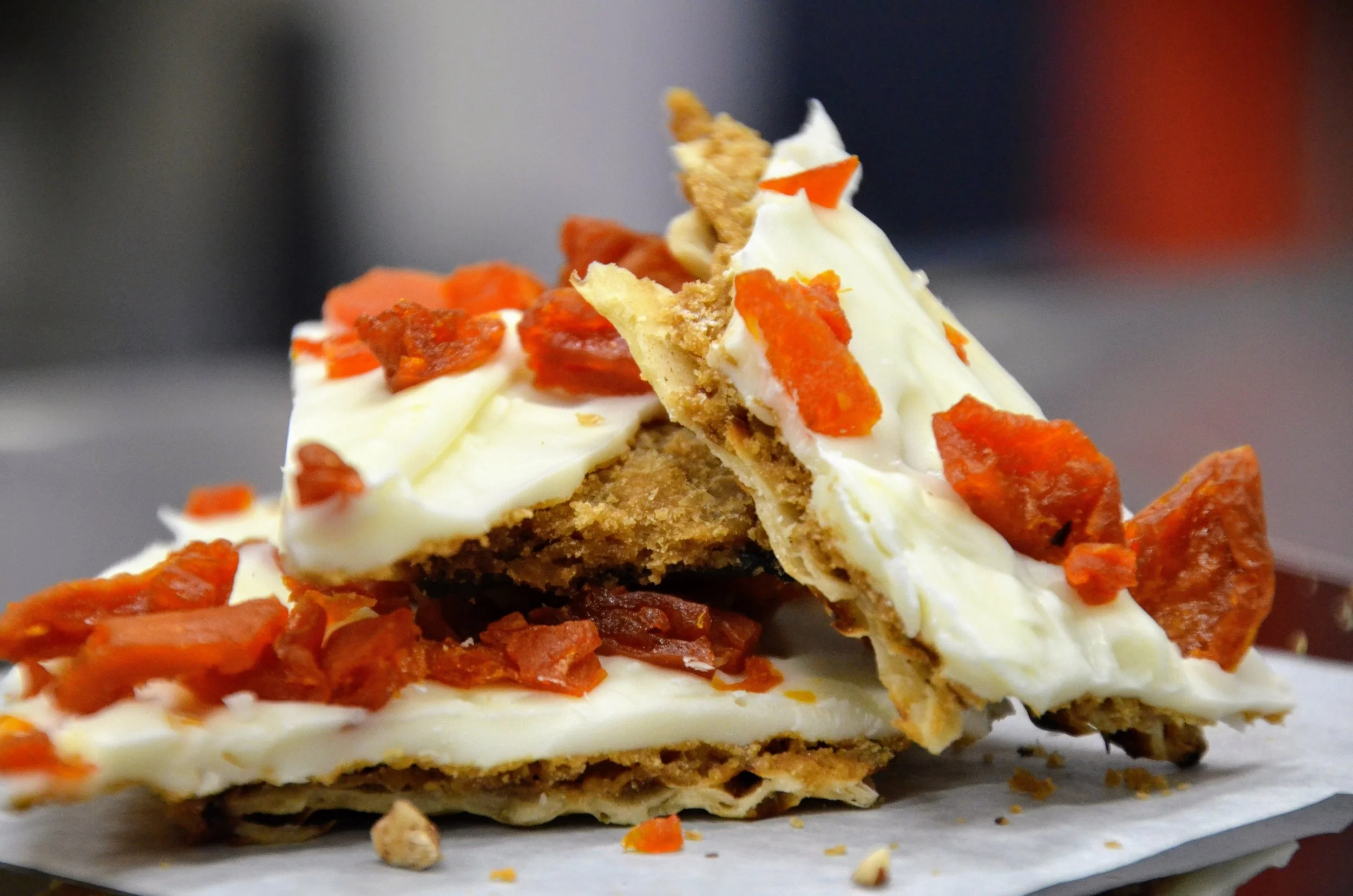 This year's flavors: Milk Chocolate with Sea Salt, Dark Chocolate Peppermint, Dark Chocolate Toasted Almond, and White Chocolate & Apricot. Plus Gluten-Free Dark Chocolate Toasted Almond and Milk Chocolate Sea Salt, too!